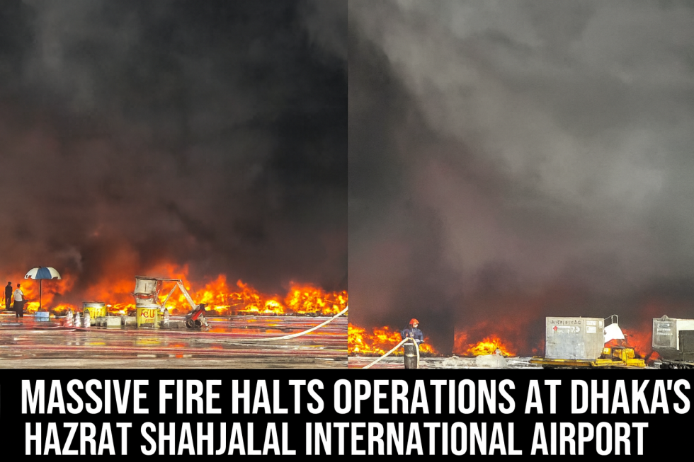 A massive fire broke out at the cargo area of Hazrat Shahjalal International Airport in Dhaka around 2:15 pm on Saturday, October 18, 2025, forcing authorities to suspend all flight operations temporarily. The blaze reportedly began in the import section of the Cargo Village and quickly spread, prompting an extensive emergency response. Nearly 30 firefighting units, along with personnel from the Bangladesh Air Force, Navy, and airport fire services, rushed to the scene to contain the flames. Airport authorities also moved aircraft parked nearby as a precautionary measure to prevent further damage. All incoming and outgoing flights were halted, with several international flights diverted to alternative airports such as Chattogram and Kolkata. Passengers waiting at terminals were advised to stay inside for safety as thick smoke billowed from the cargo facility. Despite the intensity of the fire, there were no reports of casualties, and emergency teams managed to bring the situation under control after several hours of operation. The cause of the fire remains under investigation, though initial reports suggest it may have been triggered by an electrical short circuit or improper storage of goods. The Civil Aviation Authority of Bangladesh has assured that a detailed inquiry will be conducted, and normal flight operations will resume once safety inspections are complete. The incident caused major disruptions to both domestic and international schedules, with airlines coordinating with authorities to manage stranded passengers. The extent of damage to cargo and airport infrastructure is still being assessed, but the swift action of emergency responders helped prevent a potentially larger disaster